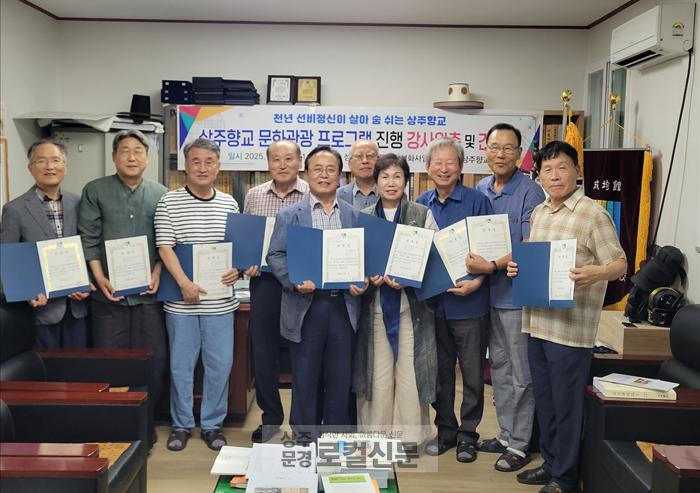 천년 역사의 대설위 상주향교(전교 김명희)에서는 8월 7일(목) 오전 11시 상주향교 전교실에서 성균관유교문화활성화사업단 공모사업으로 선정된 향교·서원 문화관광 프로그램 운영 강사진에게 위촉장을 수여하고 간담회를 개최하였다.