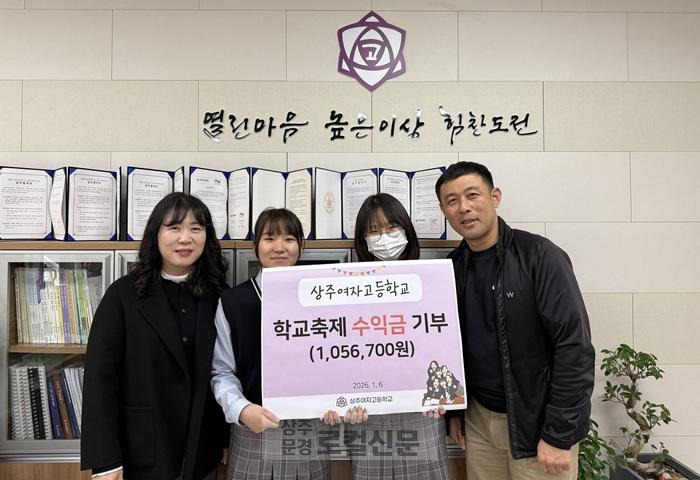 상주여자고등학교(교장 차유경)는 학교 축제를 통해 마련한 수익금(금 1,056,700원)을 사랑의 열매 사회복지공동모금회 경북지회에 기부하면서 따뜻한 온기 나눔을 실천했다.